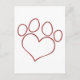 Heart Shaped Paw Print Dog Cat Puppy Kitten Postcard
