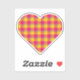 Add a playful, preppy touch to your belongings with the Heart Shaped Plaid Yellow Pink Sticker. Featuring a bright yellow and pink plaid pattern accented with charming heart motifs, this sticker is perfect for laptops, notebooks, water bottles, planners, or any surface that could use a pop of color and personality. Durable and vibrant, it brings fun and style to everyday items, making it a great gift or personal accessory for anyone who loves heart-inspired, cheerful designs.