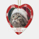 Celebrate the feline in your life with this charming heart-shaped cat lover photo ornament, perfect for honoring your pet during the holiday season. This personalized ornament features a festive red border adorned with white snowflakes, framing your cat’s photo in a heartwarming display of holiday cheer. Below the image, you can customize your cat’s name and the year, creating a keepsake that’s as unique as your furry friend.