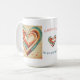 Introducing our vibrant heart-shaped abstract background mug! This stunning design features a captivating blend of red, orange, and blue hues, creating a visually striking colour scheme that is sure to catch the eye. Perfect for adding a touch of artistic flair to your morning coffee or tea, this mug is both stylish and functional. Crafted with high-quality materials, it ensures durability and a comfortable grip. Personalise this mesmerising backdrop to make it uniquely yours, capturing the essence of your special moments.Start your day with a burst of colour and love with our heart-shaped abstract background mug!