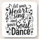 Inspirational coaster with the phrase "Let your heart sing and your soul dance".