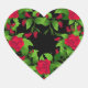 Heart shape sticker shown with a graphic print of pretty red roses.