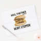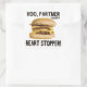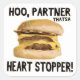 Cute stickers with a cheeseburger design that say, "Hoo, partner. That's a heart stopper!" in a Fargo accent.