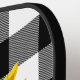 Yellow sunflower with heart-shaped centre and ladybug on black and white buffalo plaid.