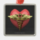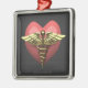 Heart symbol with medical symbol (caduceus) metal tree decoration
