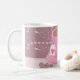 Heart tea mug with a love design. The cup of tea is pink with polka dots. Thanks to Creative Fabrica for some of the elements in the design.