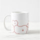 Reddish brown hearts dancing cheek to cheek across the bottom of the mug.