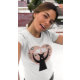 For something really peaceful and full of love check out this design of a heart tree. The heart tree is a lovely colour with pinkish leaves and a black trunk. In the tree itself is two white birds facing each other. This heart tree with two birds design looks great on this womens t-shirt. Perfect for yourself or as a gift