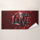 Heart Whispers: The Magic of Love and a Little Kitten.. Stylised word LOVE rises majestically in bold, red font, framed by mysterious black outlines and ornate flourishes that dance around the letters like delicate tendrils. The background is a deep red, reminiscent of the embers of a blazing fire - warm and inviting