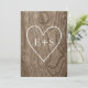 Heart with initials wood grain rustic wedding invitation featuring your initials in a heart on brown wood grain and a white frame with vintage elements. This romantic design with wooden look is part of a wedding set and is perfect for a country or barn western fall/autumn wedding . Note that there is not real wood but just flat image.