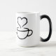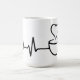 Minimalist neon-style line art of a heartbeat integrated with a coffee cup, ideal for coffee lovers and morning enthusiasts seeking unique, vibrant apparel.