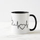 A black heartbeat design on a white background, complete with a coffee cup