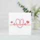This Heartbeat Scribbles design features a delicate and rhythmic pattern created by a single continuous line. The line forms heartbeat-like patterns interspersed with small hearts and swirling script resembling love notes. The thin red lines on a clean white background create a fresh, modern look with a touch of playfulness. This versatile design works well for invitations and can be easily adapted for stationery, fabric prints, or even minimalist wall art. Its simplicity allows for easy colour customisation to suit various themes.
