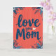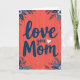 This card features the message “Love you Mom” in deep navy blue letters across the center. The lettering has a flowing, handwritten look, and it stands out strongly against a coral red background. The background also has faint vertical lines and tiny white specks scattered around, giving it a soft bit of texture. In each corner, there are dark blue flowers and leaves with thin white outlines that make the petals and shapes easy to see. The flowers include open blooms, small buds, and leafy sprigs, framing the words without covering them. A small cream-colored heart sits right after the word “you,” like a sweet little pause in the message ❤️. It feels meaningful to give because it’s simple, direct, and full of affection, making your love for Mom easy to say 🥰. Hope it helps you share Valentine’s Day sentiments with someone you care about.
