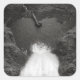 A black and white photograph of a heart shaped pool, that is seen overlooking a waterfall.