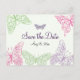 Delicate hand sketched, butterflies in flight decorate this Save the Date postcard. This is part of the complete wedding collection Heart's a Flutter, and also available as a magnet.