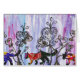 An original, mixed media, cat design created using collage, drawing and painting techniques. A great card for cat lovers.