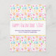 A postcard with a whimsical love themed pattern perfect for Valentine's Day. Heart on a stick, love letters, muffins, tulips and cherries bring joy and happiness to this cute little pattern.