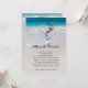 Hearts and ocean beach scene wedding invitation. Casual wording with the bride and groom inviting guests. Add text in paragraph form as a personal letter to guests over a smooth beach sand background with tropical blue sea water on the horizon.