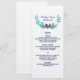 Colourful and whimsical Hearts and Vines Wedding Menu Card with a cute stylised vine and sweet heart border in a pretty combination of turquoise, blue, and red. This trendy and modern design is easy to customise with your wedding details.
