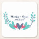 Colourful and whimsical Hearts and Vines Wedding Paper Coasters with a cute stylised vine and sweet heart border in a pretty combination of turquoise, blue, and red. This trendy and modern design is easy to customise with your wedding details.