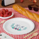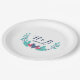 Colourful and whimsical Hearts and Vines Wedding Paper Plates with a cute stylised vine and sweet heart border in a pretty combination of turquoise, blue, and red. This trendy and modern design is easy to customise with your wedding details.