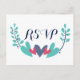 Colourful and whimsical Hearts and Vines Wedding Response Postcard with a cute stylised vine and sweet heart border in a pretty combination of turquoise, blue, and red. This trendy and modern design is easy to customise with your wedding details.