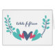 Colourful and whimsical Hearts and Vines Wedding Table Number Card with a cute stylised vine and sweet heart border in a pretty combination of turquoise, blue, and red. This trendy and modern design is easy to customise with your wedding details and table number(s).