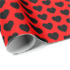 A wrapping paper with black hearts on a red background. Customise the red background among other options.