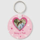This sweet keychain has a pattern of hearts in shades of pink. You can customise the photo and names. It makes a great Valentine's Day gift, or a gift or favour for a bridal shower or wedding.