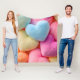 Cuddle up in softness with this fleece blanket adorned with plush pastel hearts in dreamy shades of blue, yellow, pink, and peach. This cosy and colourful blanket is perfect for adding warmth and cheerful style to bedrooms, living rooms, or as a delightful gift for anyone who loves cute and comforting decor.