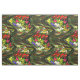 The graphic does not spread from selvedge to selvedge.