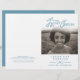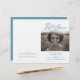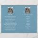 Funeral program order of service double-sided simple in our hearts forever funeral program in white and grey blue. Simple yet elegant program simply replace sample text and photo holders with your own special photos and information details and fold programs in half on delivery. Original typography and in our hearts forever graphic design by Sarah Trett. www.sarahtrett.com for www.mylittleeden.com (Photo credit by Guilherme Stecanella on Unsplash (model photo is a placeholder image for you to replace).