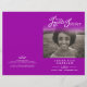 Funeral program order of service double-sided simple in our hearts forever funeral program in mauve purple pink. Simple yet elegant program simply replace sample text and photo holders with your own special photos and information details and fold programs in half on delivery. Original typography and in our hearts forever graphic design by Sarah Trett. www.sarahtrett.com for www.mylittleeden.com (Photo credit by Guilherme Stecanella on Unsplash (model photo is a placeholder image for you to replace).