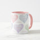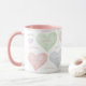 Cute mug with watercolor hearts with “He loves me” “He loves me not” typography. A sweet way to start your morning drinking your coffee or tea.