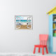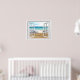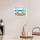 Romantic hears in sand beach view, fake window scene, for a windowless room wall. Fun, realistic optical illusion scenic poster for an office or study wall.