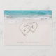 Features romantic turquoise water and white sand beach , and two hearts in the sand with the bride's and groom's initials on the back, great accommodations card for summer beach wedding, or tropical destination wedding.