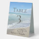 Wedding table numbers. You will need to customise each sign with your names, initials and the table number, then add each to your cart individually. Scenic hearts in the sand beach image, for visions of relaxation in paradise, celebrate your beach wedding with this lovely design. Two interlocking hearts drawn in the beach sand on the ocean shore, perfect for a destination, island, tropical paradise coastal nautical event. Blue turquoise and tan sand with white waves crashing on the shore.