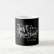 Celebrate love in style with our HEARTS Just Married Script Names Wedding Date Coffee Mug – enjoy drinking your favourite beverage from your custom cups in your honeymoon suite! Crafted with unique charm, this adorable mug adds a touch of whimsy to your newlywed journey. Featuring trendy white script font typography. Personalised with your names + wedding date. Bold black background and pink accents.