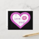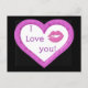 "I love you" postcard in hot pink & black