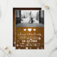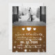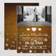 Check out this timeless wedding save the date design: three bright white hearts, elegant text, and a customisable slot for your own photograph - all against a backdrop of glittering lights and rustic brown wood. Customise this save the date card for yourself!
