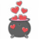 An illustration of a cute cartoon black cauldron where a witch is making a spell for love potion full of red hearts for valentine's day. This cute magical love design is a gift idea for witchcraft and magic lovers and hearts day lovers.