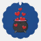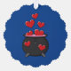 An illustration of a cute cartoon black cauldron where a witch is making a spell for love potion full of red hearts for valentine's day. This cute magical love design is a gift idea for witchcraft and magic lovers and hearts day lovers.
