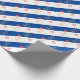 Festive joy heart pattern on striped royal blue and white background Gift Wrapping Paper.