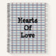 Hearts Of Love is a playful whimsical design sure to capture anyone's heart! This handcrafted design consists of pink stripes layered over an abstract of hearts & flowers and blue & white stripes across the notebook all amidst a blue & white motif!