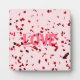 Red and purple hearts fly in the air against the pink background. Valentive's Day greetings! Joy and love is in the air! Text LOVE on some products. T-shirts, prints and gifts for fun and good mood and to celebrate St. Valentine's Day