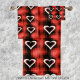 This graphic design, has been Digitalised, into an Abstract, chequerboard pattern, with small, black hearts, on white hearts-displayed upon red, and black squares.