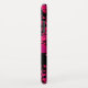 A unique and elegant stylised hearts patterned iphone case in hot pink and black. Personalise this item with your name. Currently reads: Amber. This original pattern is designed by Sarah Trett. www.sarahtrett.com