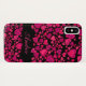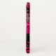 A unique and elegant stylised hearts patterned iphone case in hot pink and black. Personalise this item with your name. Currently reads: Amber. This original pattern is designed by Sarah Trett.