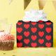 A wrapping paper with red hearts on a black background. Customise the black background among other options.